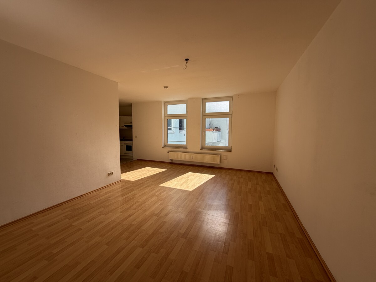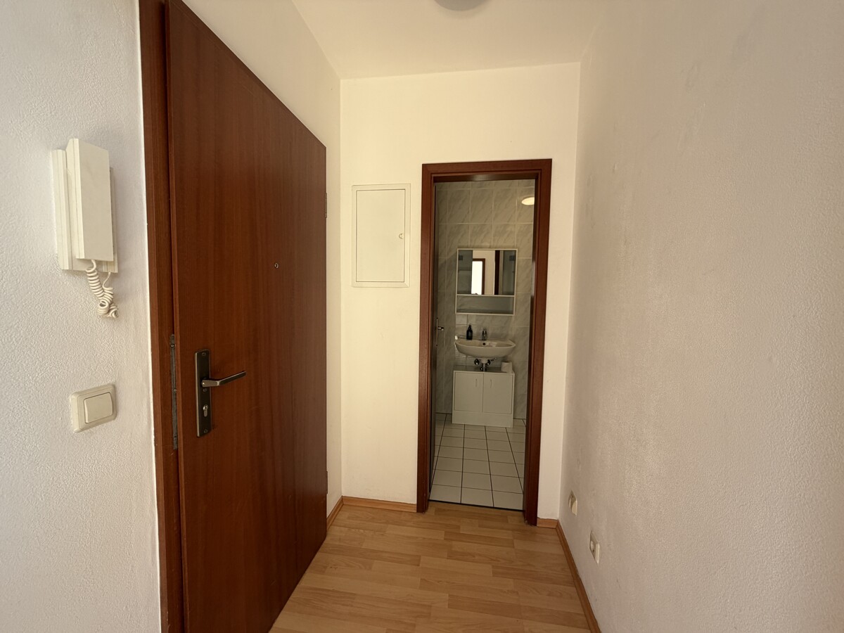 Die angebotene 1-Zimmer-Wohnung befindet sich im 2. Obergeschoss eines gepflegten Mehrfamilienhauses (BJ´1995) und überzeugt durch ihren funktionalen Grundriss sowie eine helle, freundliche Wohnatmosphäre. Ein Aufzug ist nicht vorhanden. Der großzügige Wohn- und Schlafbereich (ca.25m²) bildet das Herzstück der Wohnung. Große Fensterflächen sorgen für eine angenehme Belichtung und schaffen eine offene, freundliche Atmosphäre. Durch die rechteckige Raumaufteilung lässt sich der Wohnbereich gut in Schlaf-, Wohn- und Esszone gliedern. Die offen integrierte Küchenzeile ist mit einer Einbauküche ausgestattet und verbleibt in der Wohnung. Im Flur- und Wohnbereich liegt Laminatfußboden. Das innenliegende Badezimmer ist mit einer Badewanne, einem wandhängenden WC sowie einem Waschbecken ausgestattet. Zusätzlichen Stauraum bietet ein zur Wohnung gehörendes Dachbodenabteil. Ein weiterer Pluspunkt ist der im Kaufpreis enthaltene Tiefgaragenstellplatz. Die Wohnung liegt ruhig zur Hofseite hinaus. Die Wohnung ist bezugsfrei und eignet sich sowohl zur Eigennutzung als auch als attraktive Kapitalanlage. Durch die kompakte Größe, die praktische Ausstattung sowie den Stellplatz bietet sie ein solides Investment mit guter Vermietbarkeit. Das monatliche Wohngeld (Whg.) beträgt 285€, inkl. 15€ Instandhaltungsrücklage. Das Wohngeld für den TG-Stellplatz beläuft sich auf 23€, inkl. 2€ Instandhaltungsrücklage.