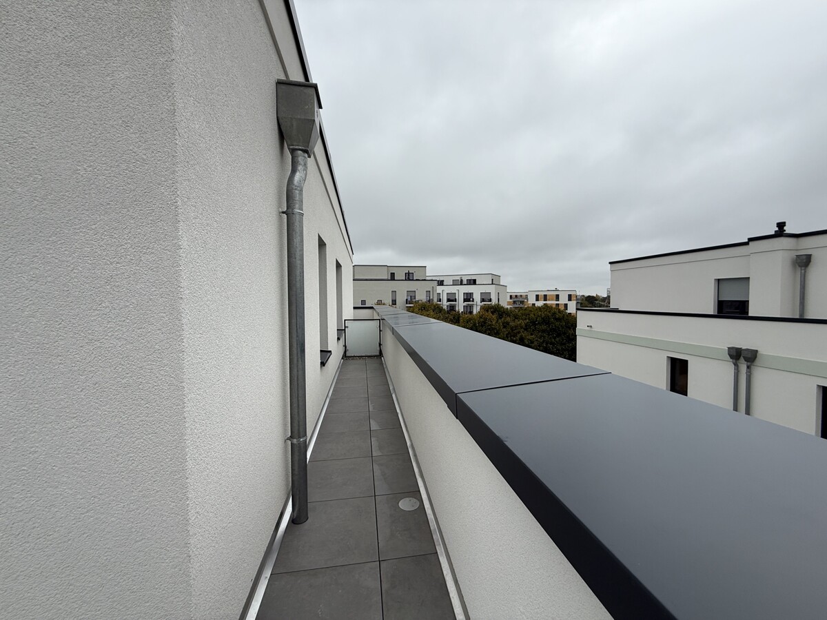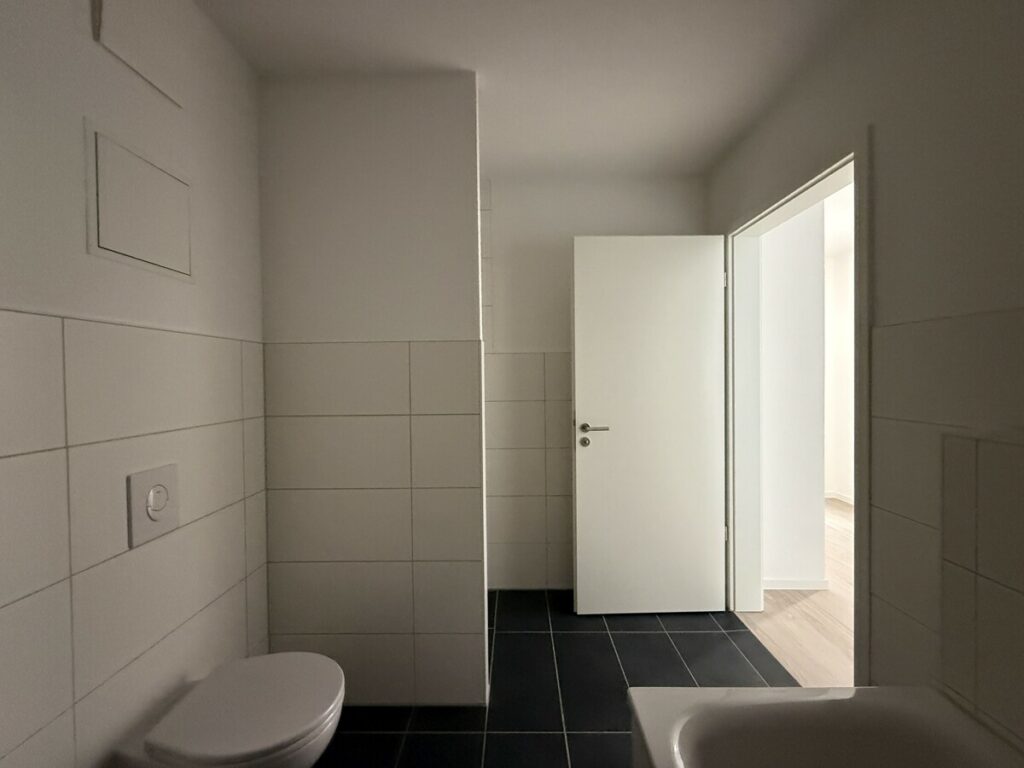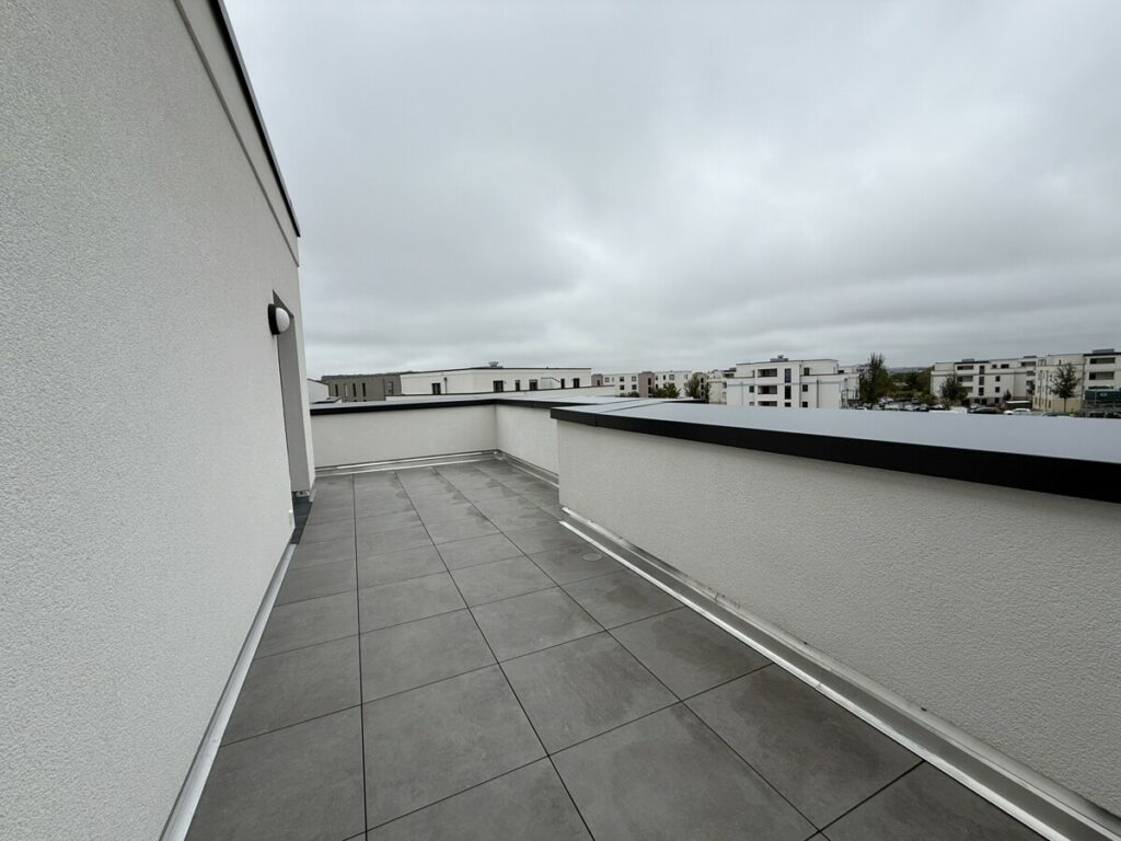 Ein besonderes Highlight ist die großzügige Süd-/Südwest-Terrasse (ca. 28 m²), die zum Entspannen und Verweilen einlädt. Von hier aus genießen Sie einen weiten Blick über die gepflegte Wohnanlage. Das modern geflieste Badezimmer ist mit einer Badewanne, einer ebenerdigen Dusche sowie einem Hänge-WC ausgestattet und präsentiert sich in zeitgemäßem Design.