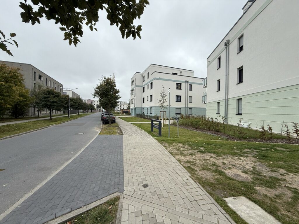 Der moderne Wohnkomplex besteht aus neun Mehrfamilienhäusern, die sich derzeit in der finalen Fertigstellungsphase befinden. Inmitten der Anlage liegt ein kleiner Spielplatz, der sich ideal für Familien eignet. Außerdem befindet sich hier der Zugang zur Tiefgarage. Alle Gebäude sind unterkellert und verfügen über praktische Fahrradabstellräume sowie großzügige Kellerabteile, die den Bewohnern zusätzlichen Stauraum zur privaten Nutzung bieten.