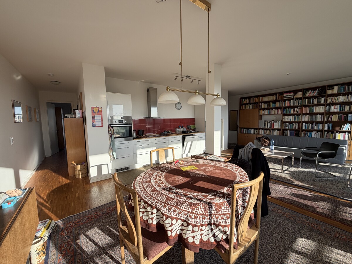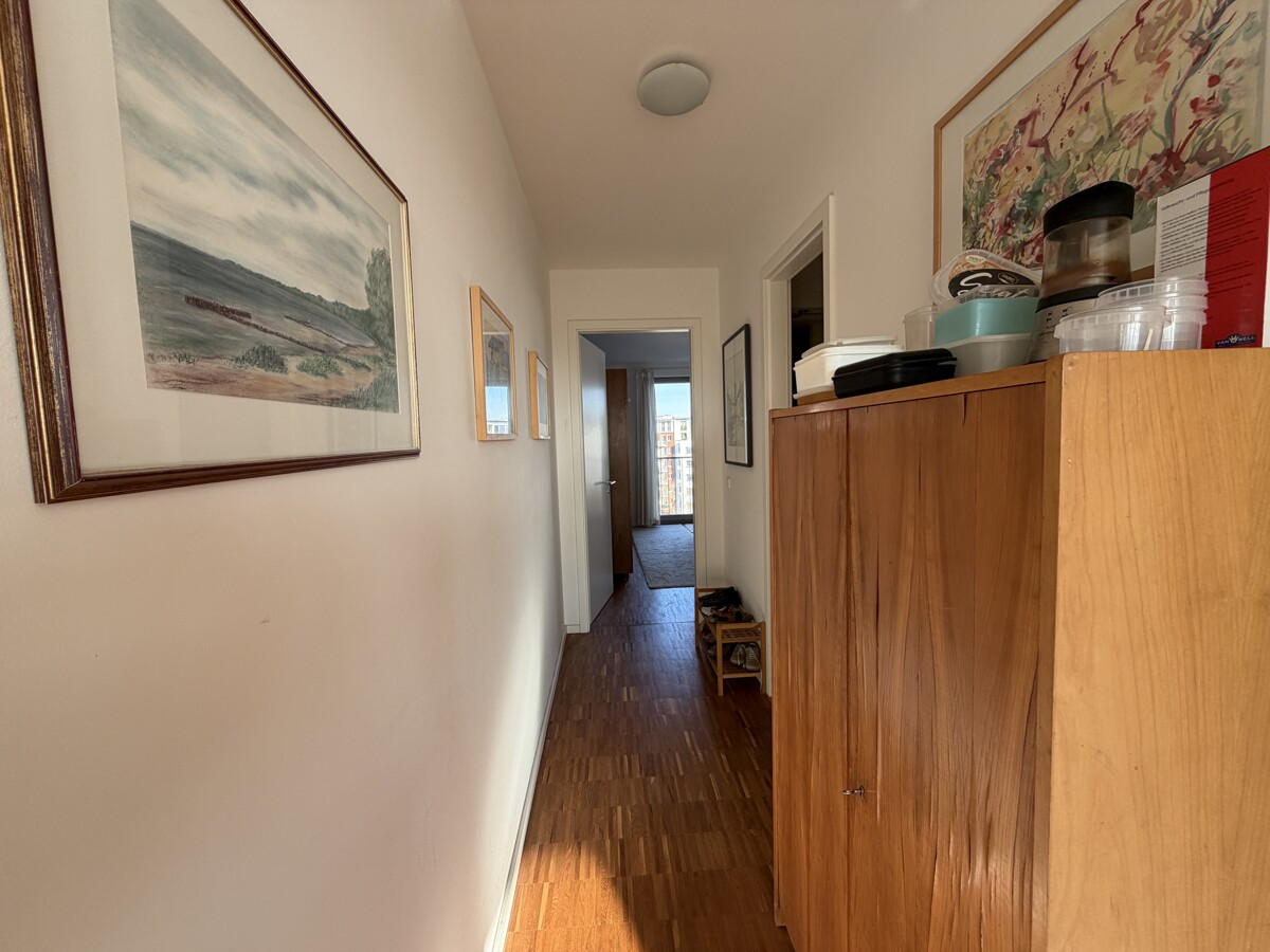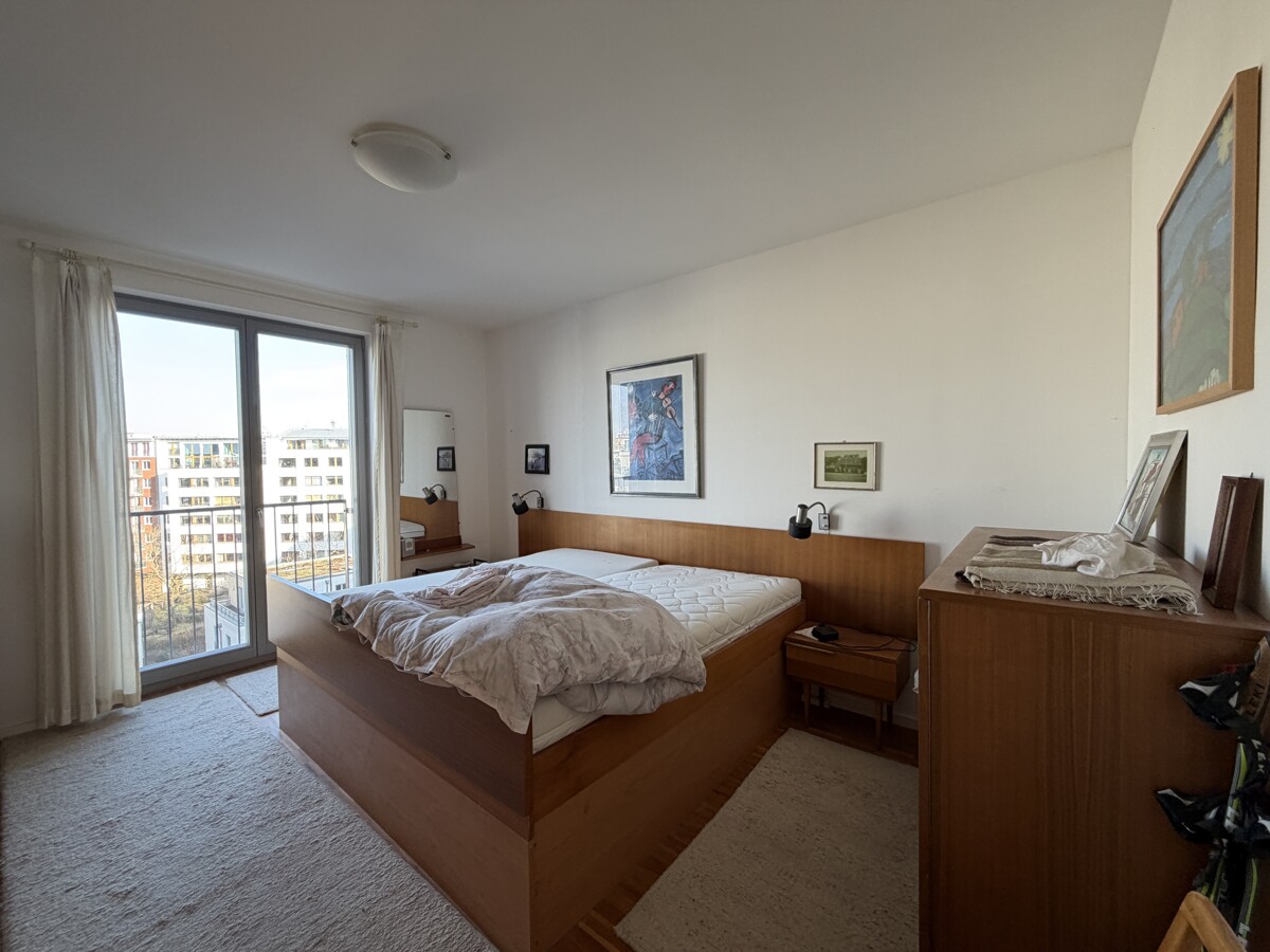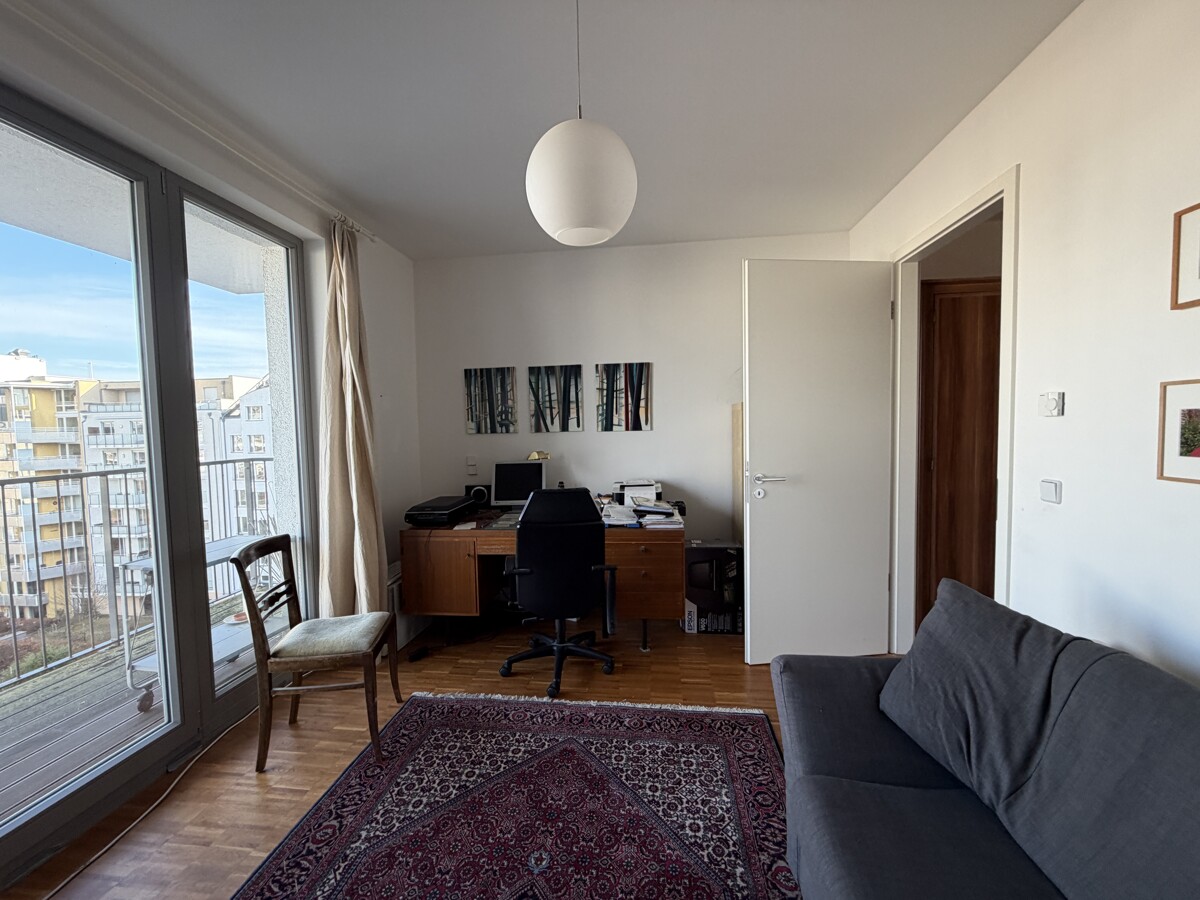 Die hochwertige Wohnung befindet sich in einer zwischen 2011 und 2013 errichteten Wohnanlage mit drei Vorderhäusern sowie mehreren Townhäusern im gepflegten Innenhof. Dieser bietet Grünflächen, Sitzmöglichkeiten und Spielbereiche. Im Untergeschoss stehen eine Tiefgarage sowie separate Kellerräume zur Verfügung. Die helle Wohnung liegt im 6. Obergeschoss und ist bequem per Fahrstuhl erreichbar. Die erhöhte Lage sorgt für Ruhe und attraktive Ausblicke über die umliegende Bebauung. Zentraler Mittelpunkt ist der großzügige Wohn- und Essbereich mit offener Wohnküche. Große Fensterflächen schaffen eine lichtdurchflutete, freundliche Atmosphäre. Von hier aus besteht Zugang zur geräumigen Terrasse mit Platz für Sitzmöbel und Bepflanzung. Ergänzt wird der Außenbereich durch einen weiteren Balkon. Die Einbauküche ist funktional ausgestattet und harmonisch in den Wohnbereich integriert. Neben dem Wohnbereich stehen ein gut geschnittenes Schlafzimmer sowie ein weiteres Zimmer zur flexiblen Nutzung als Kinder-, Arbeits- oder Gästezimmer zur Verfügung. Das Badezimmer ist mit einer Badewanne ausgestattet, zusätzlich gibt es ein separates Gäste-Bad mit Dusche. Ein praktischer Hauswirtschaftsraum (HWR) bietet zusätzlichen Stauraum und Platz für Waschmaschine und Haushaltsgeräte. Die Wohnung ist durchdacht geschnitten, alle Räume sind über die beiden Flure gut erreichbar. In den Wohn- und Schlafräumen ist Parkettfußboden verlegt, der der Wohnung eine warme und wohnliche Atmosphäre verleiht. Die Beheizung erfolgt über eine separat steuerbare Fußbodenheizung. Zur Wohnung gehören ein Keller sowie ein Tiefgaragenstellplatz (Nr. 111), der derzeit fremdvermietet ist. Die Wohnung wird zum 01.03.2026 bezugsfrei und eignet sich sowohl für Eigennutzer als auch für Kapitalanleger. Das monatliche Wohngeld beträgt 367,85 €, inklusive 39,36 € Instandhaltungsrücklage. Die monatliche Mieteinnahme für den TG-Stellplatz beläuft sich auf 120 €.