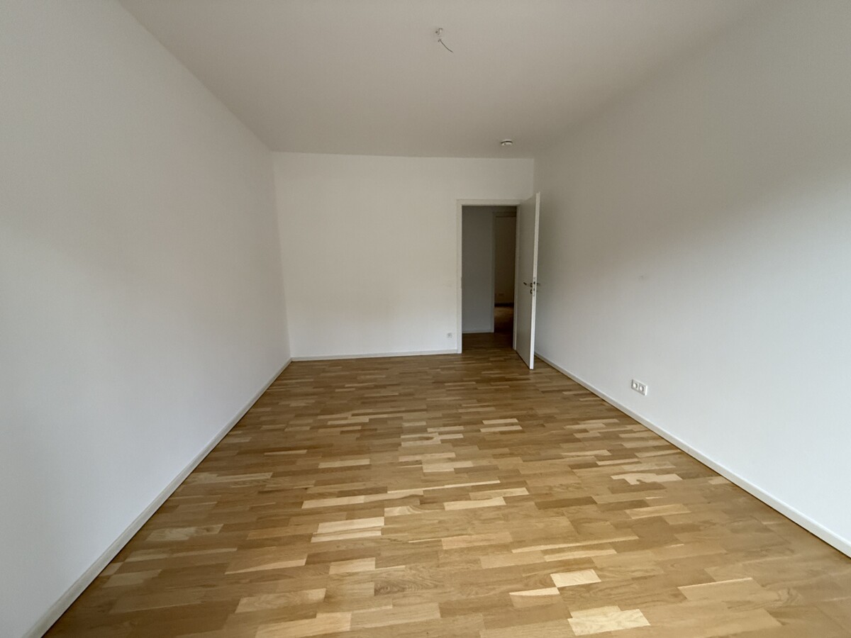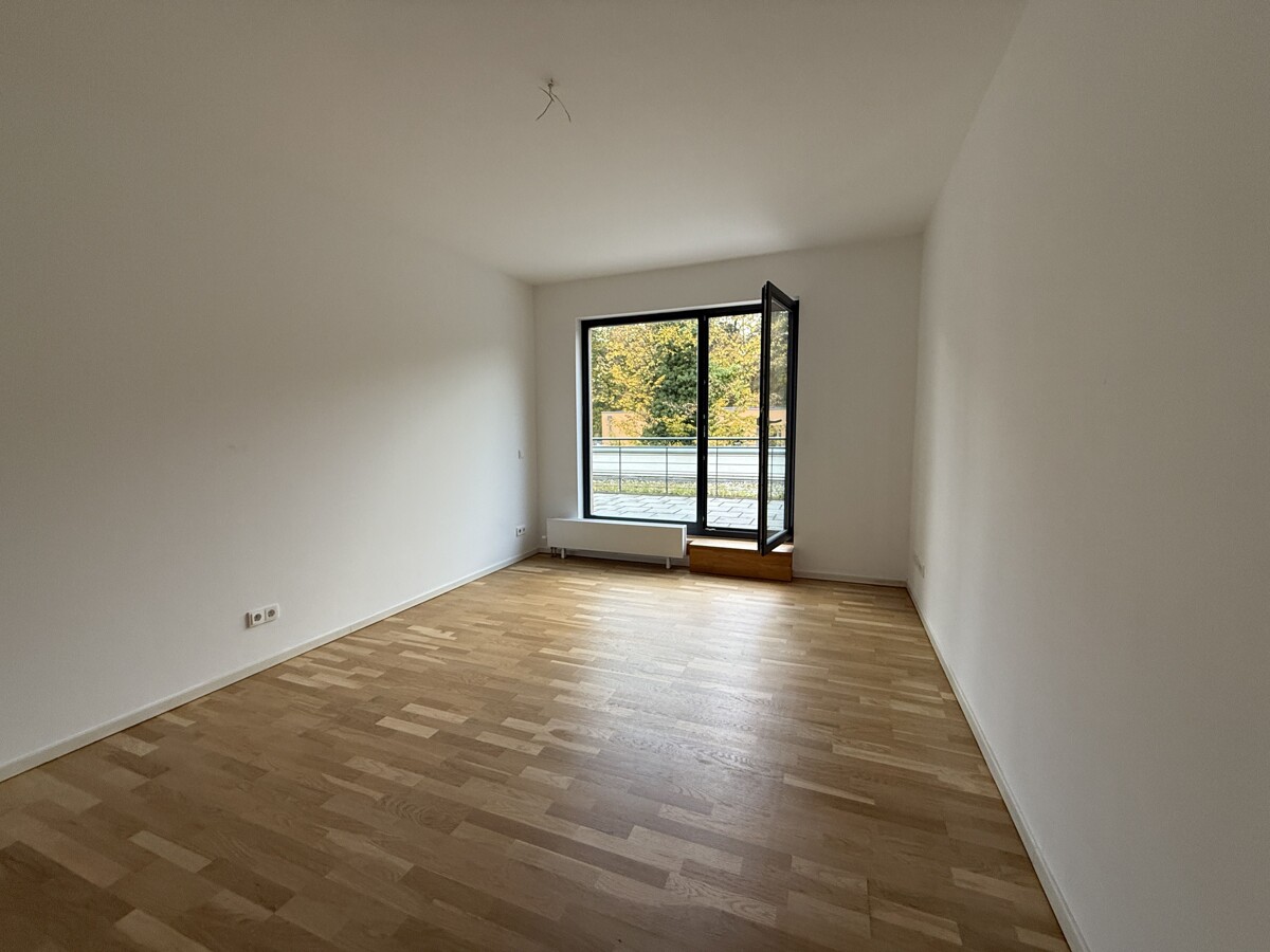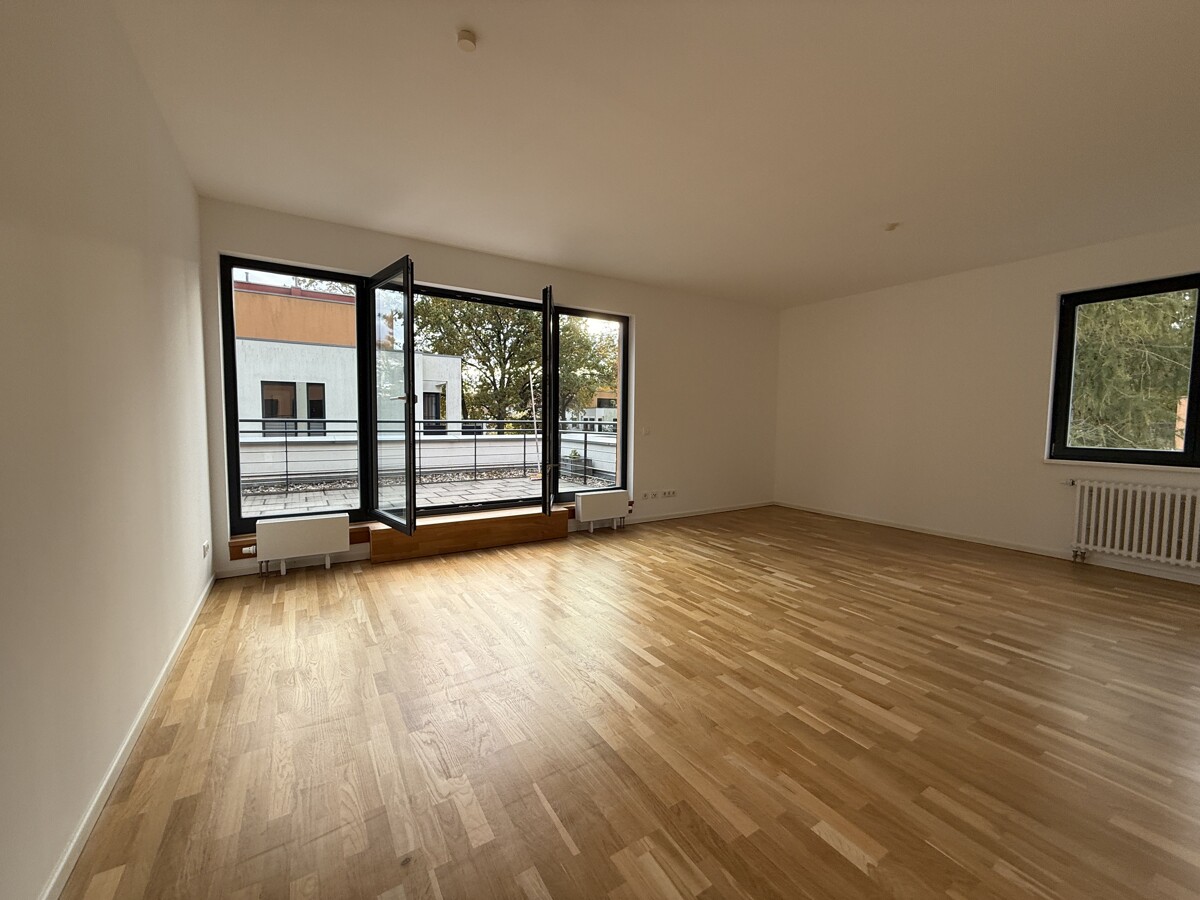 Beim Betreten der Wohnung empfängt Sie ein großzügiger Flur, der alle Räume miteinander verbindet und ein Gefühl von Weite vermittelt. Der helle Wohn- und Essbereich mit einer Fläche von etwa 30 m² bildet das Herzstück der Wohnung. Große Fensterflächen sorgen für viel Tageslicht und schaffen eine freundliche Atmosphäre. Von hier aus gelangen Sie direkt auf die weitläufige erste Terrasse, die sich perfekt zum Entspannen und für gesellige Stunden im Freien eignet.