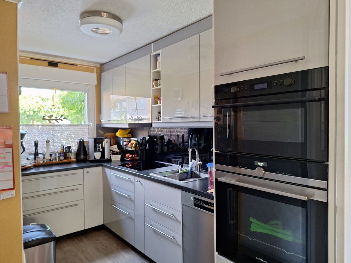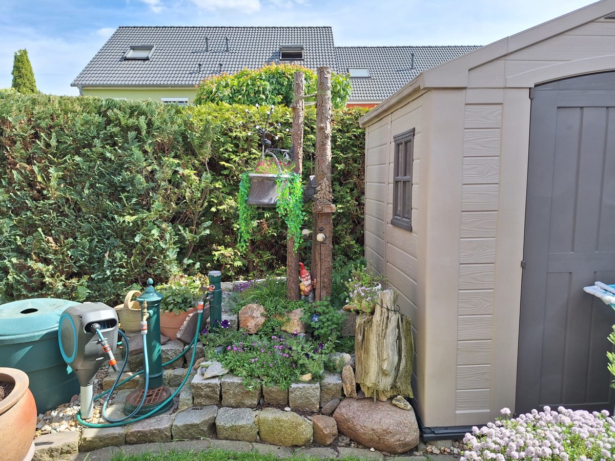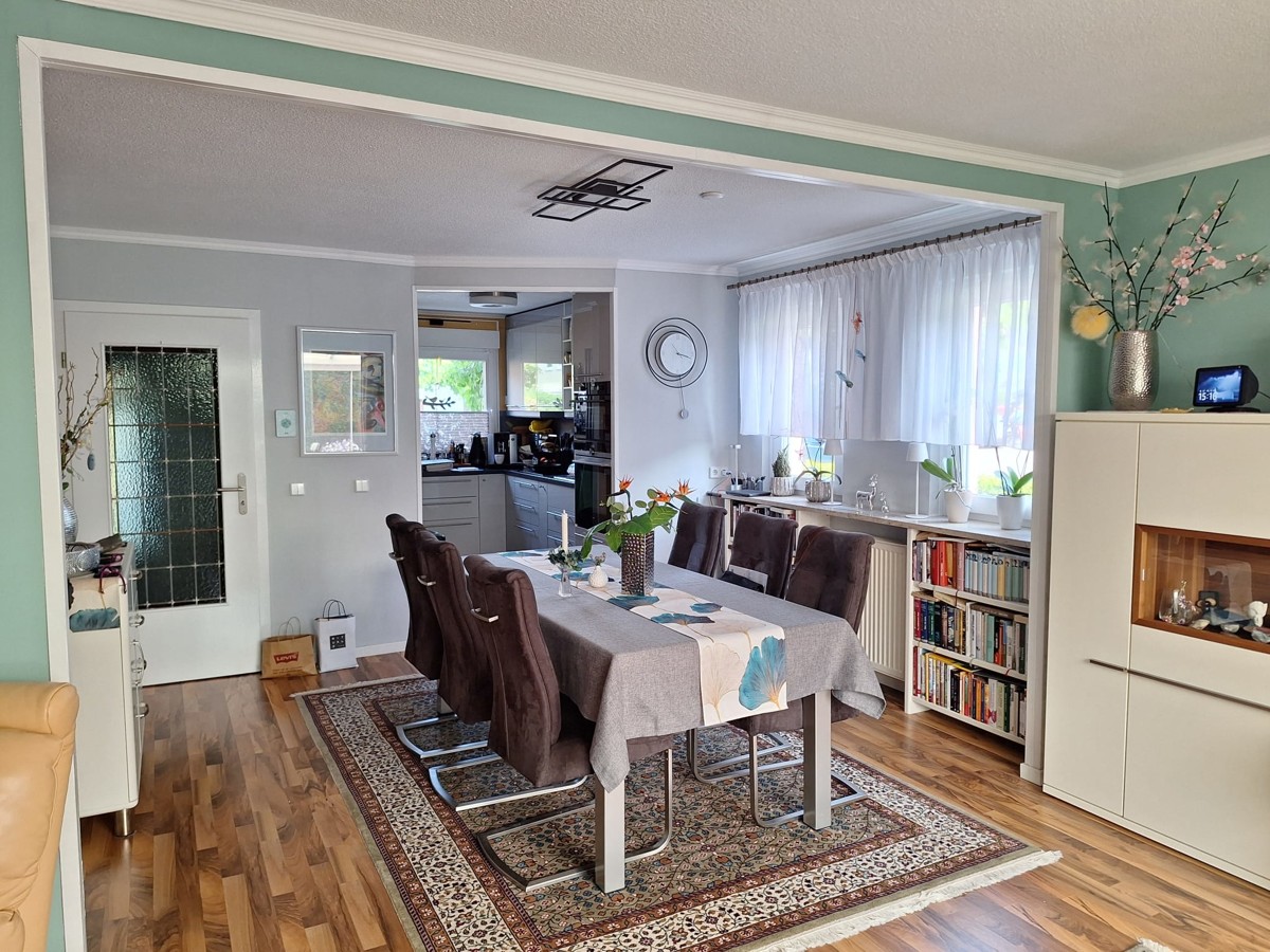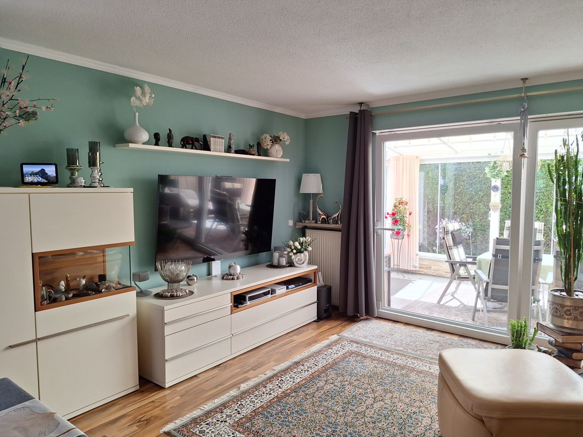 Zum unterkellerten Reiheneckhaus, Bj. 1997, gehört ein pflegeleicht angelegter Gartenanteil von ca. 167m² (Sondernutzungsrecht). Im EG befinden sich das Gäste WC, die offene Küche und ein ca. 30 m² großer Wohn- und Essbereich. Die EBK, mit Ausnahme der elektrischen Geräte, verbleibt im Haus. Durch die Glasüberdachung der Terrasse mit ca. 3×5 m und den Einbau von Glasschiebeelementen, kann die Terrasse viele Monate genutzt werden. Optisch wird damit auch eine Vergrößerung des Wohnbereichs erreicht. Die Terrassenfläche von ca. 15m² ist in der Wohnflächenangabe nicht mit enthalten.