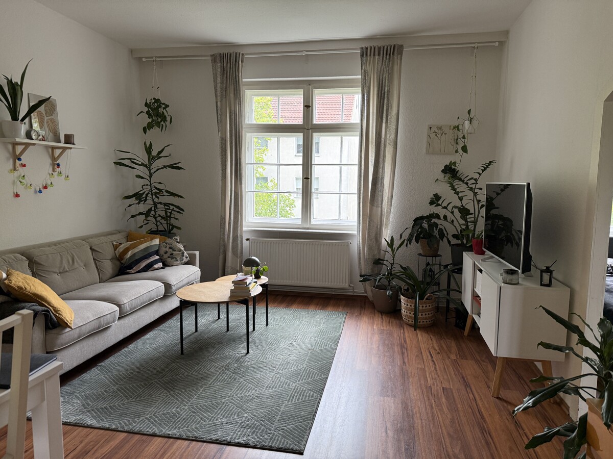 Wohn- und Schlafzimmer liegen ruhig zur Hofseite, wodurch ein erholsames Wohnumfeld gewährleistet ist. In allen Wohnräumen – mit Ausnahme von Küche und Bad – ist ein Laminatfußboden verlegt.