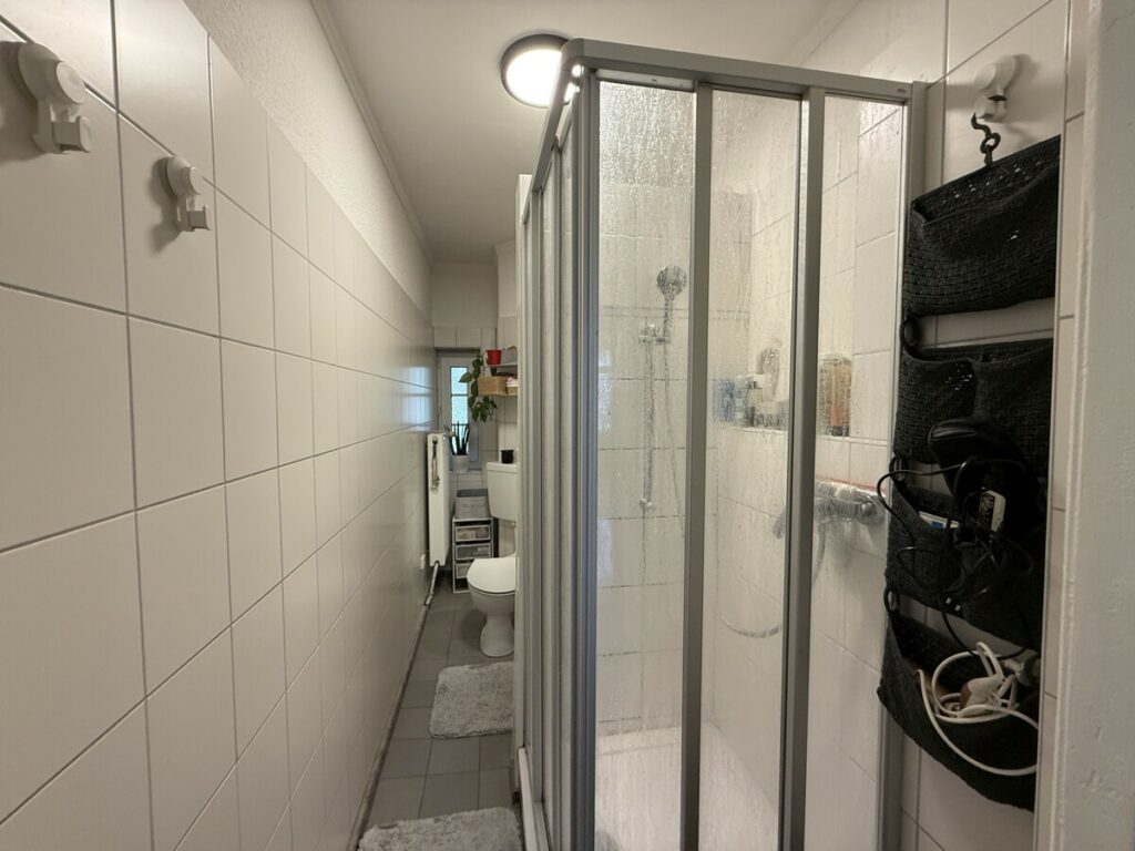 Die helle Küche ist mit einer Einbauküche inklusive Elektrogeräten ausgestattet und ermöglicht den direkten Zugang zum Balkon. Das Tageslichtbad ist mit einer Dusche, einem Handwaschbecken sowie einen WC ausgestattet. Eine praktische Kammer in der Küche bietet zusätzlichen Stauraum.
