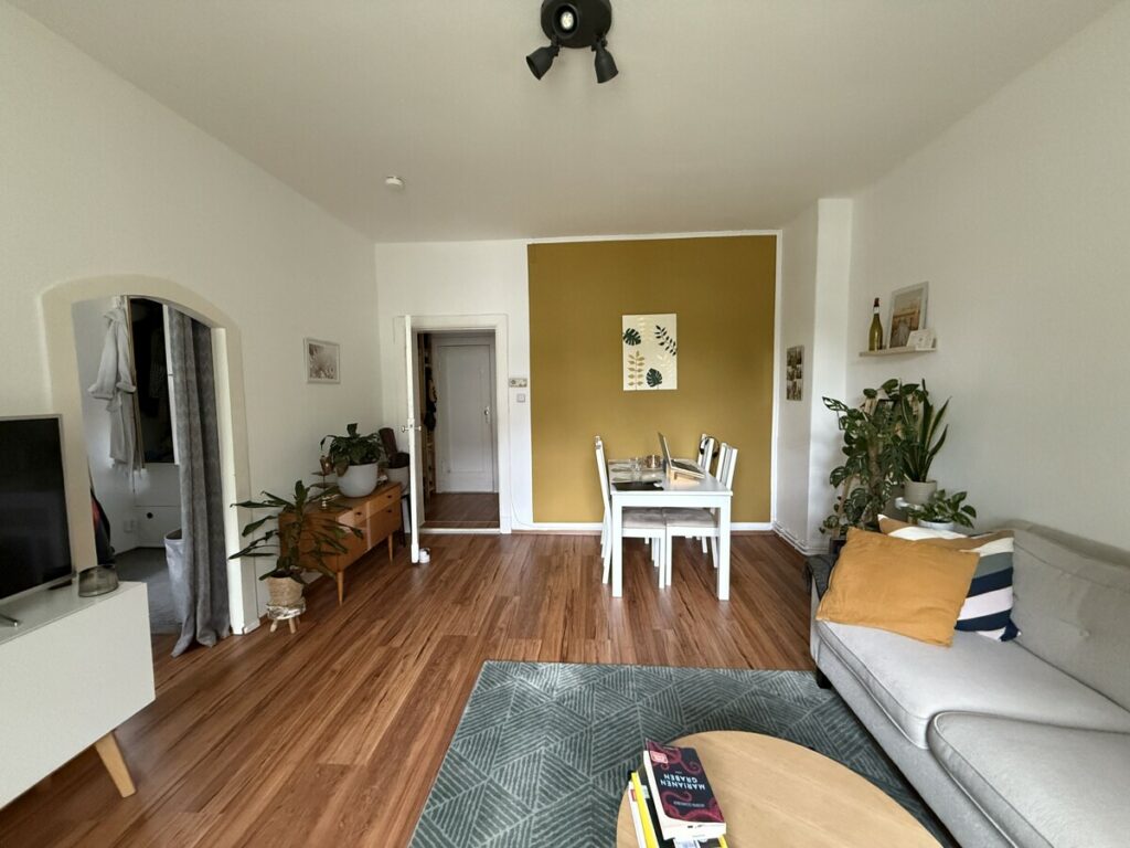 Die Wohnung befindet sich im 1. Obergeschoss eines Mehrfamilienhauses aus dem Baujahr 1930. Auf ca. 58,58 m² verteilt sich ein durchdachter Grundriss mit einem großzügigen Wohnzimmer (ca. 20 m²) und einem angrenzenden Schlafzimmer (ca. 10 m²). Ein zusätzliches kleines Arbeitszimmer (ca. 7 m²) bietet flexible Nutzungsmöglichkeiten.