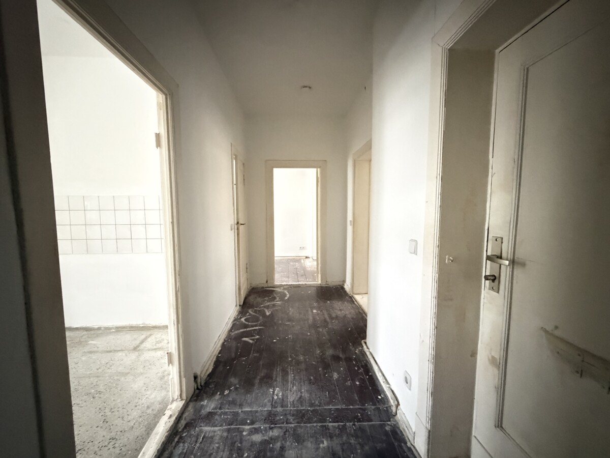 Die Wohnung präsentiert sich in einem schlichten und funktionalen Stil und befindet sich im 1. Obergeschoss eines Mehrfamilienhauses aus dem Jahr 1930. Auf ca. 54,46 m² Wohnfläche überzeugt die Wohnung durch einen gut durchdachten Grundriss mit klarer Raumaufteilung.