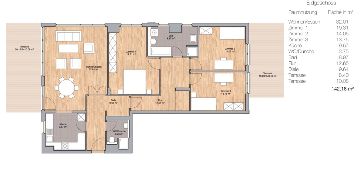 – zwei große Terrassen, je ca. 16m²/20m²