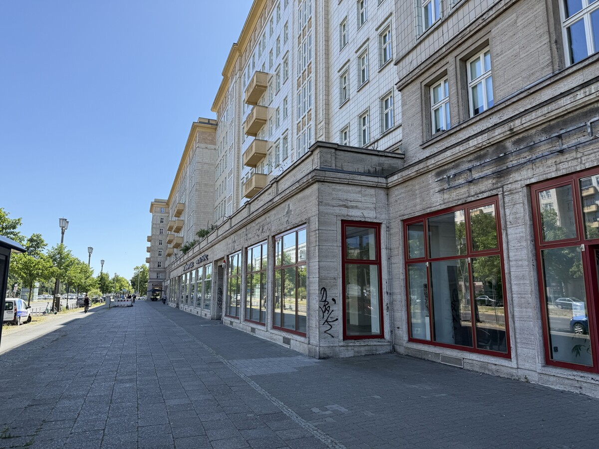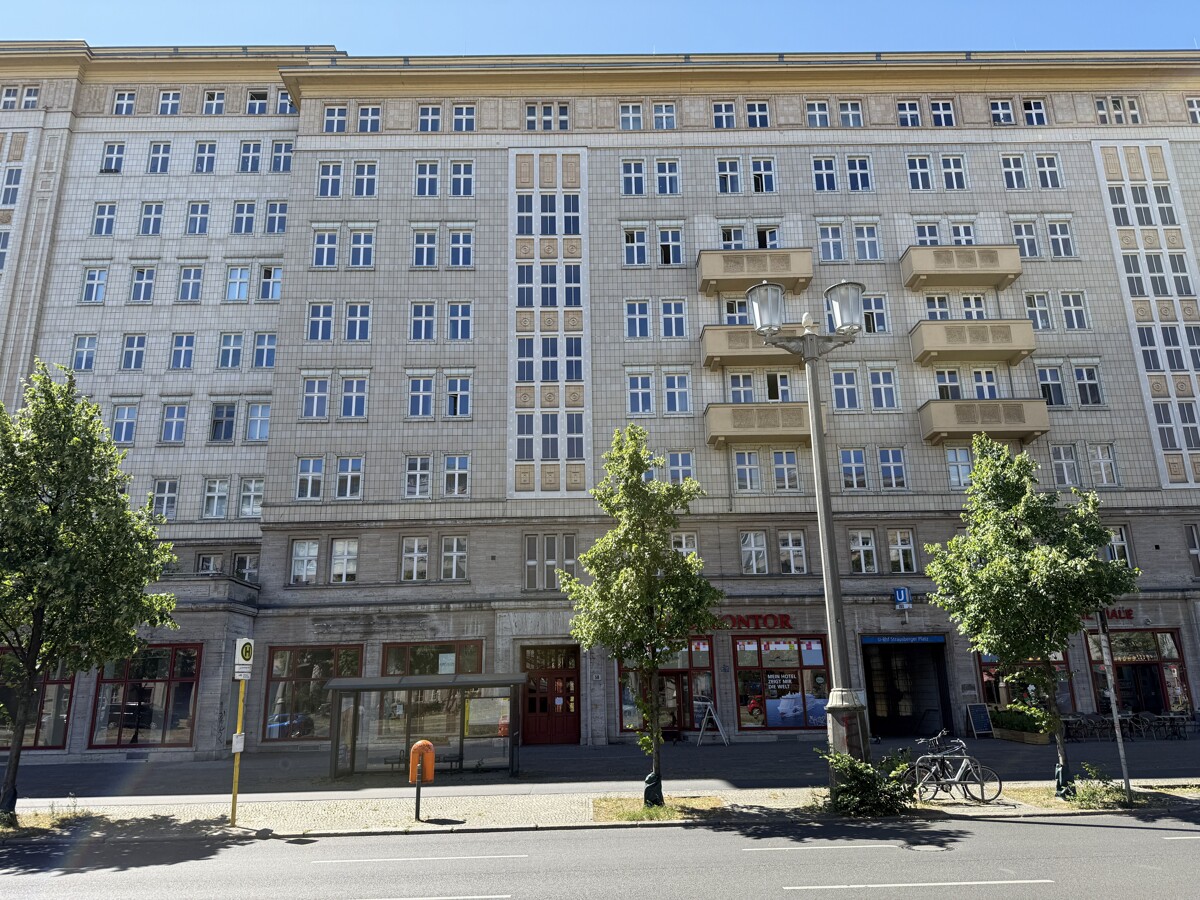 Die Wohnung befindet sich in der bekannten und lebendigen Karl-Marx-Allee im Berliner Bezirk Friedrichshain, unweit dem Strausberger Platz. Die Karl-Marx-Allee ist eine prägnante Prachtstraße, die für ihre beeindruckende Architektur im Stil des Sozialistischen Klassizismus bekannt ist und das Stadtbild maßgeblich prägt. In unmittelbarer Nähe befinden sich zahlreiche kulturelle Einrichtungen, Restaurants, Cafés und Einkaufsmöglichkeiten.