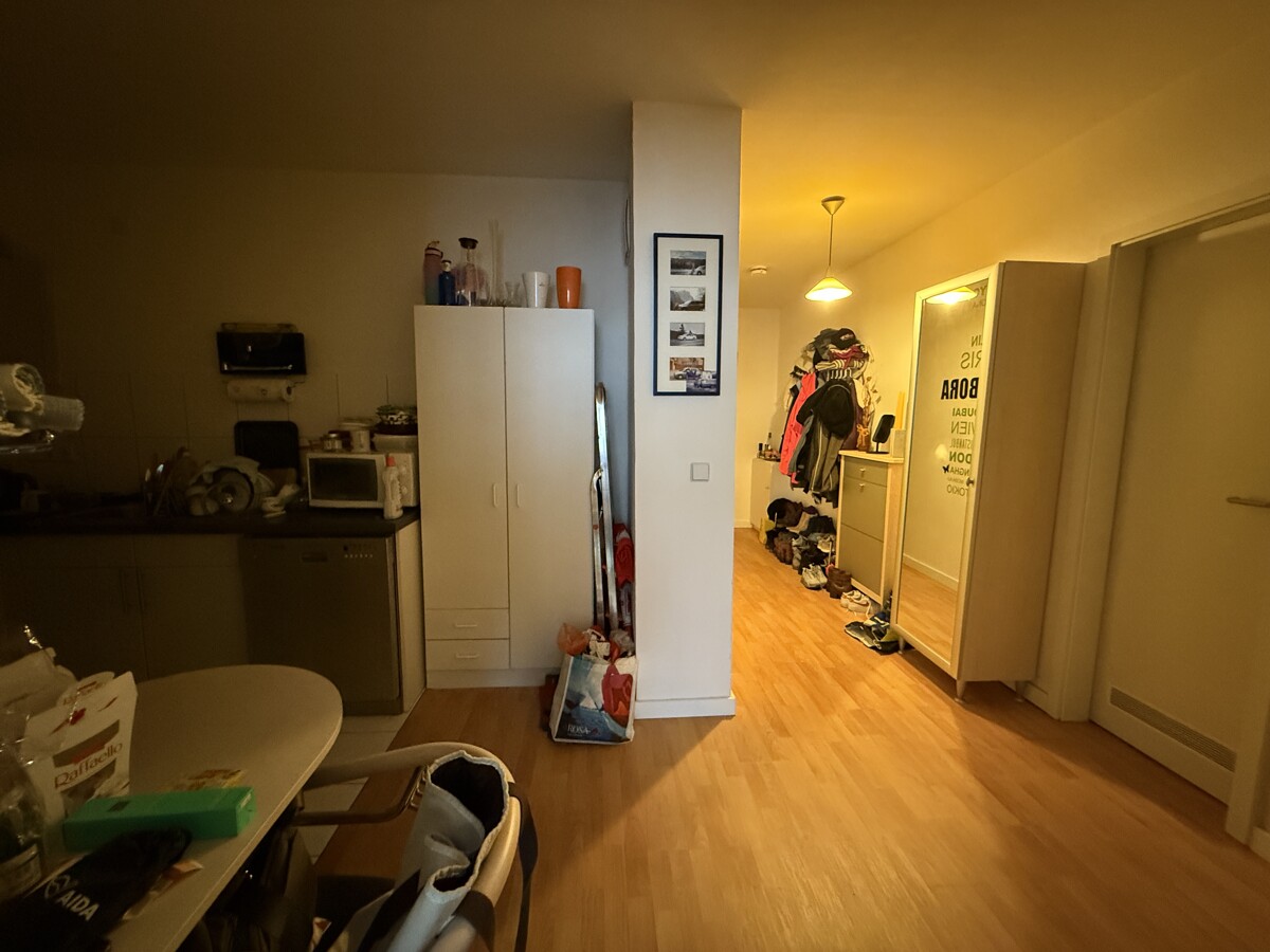 Die Wohnung verfügt über einen klar strukturierten und funktionalen Grundriss. Vom Flur aus sind alle Räume direkt erreichbar. Der großzügig geschnittene Wohnbereich mit ca. 20 m² bietet ausreichend Platz für eine kombinierte Wohn- und Esssituation und eröffnet einen direkten Blick auf das Wasser. Angrenzend befindet sich die zum Flur hin offene Küche, die mit einer Einbauküche ausgestattet ist, welche zur Wohnung gehört.