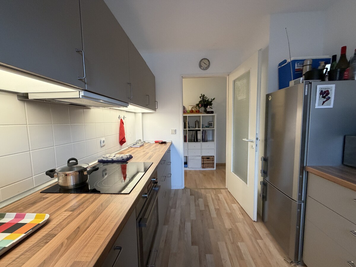 Die Wohnung überzeugt durch einen funktionalen und gut geschnittenen Grundriss. Das Wohnzimmer ist mit einem Parkettfußboden ausgestattet und bietet einen angenehmen Wohnkomfort. Im Schlafzimmer wurde ein Korkfußboden verlegt, der für ein behagliches Raumgefühl sorgt. Die vorhandene Einbauküche gehört zur Wohnung und ist im Kaufpreis enthalten. Das Tageslichtbad ist zweckmäßig ausgestattet und verfügt über eine Badewanne, ein WC sowie ein Handwaschbecken.