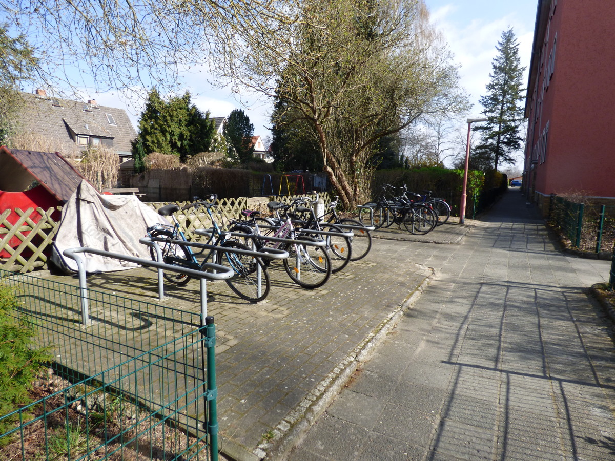 Die unterkellerte Wohneigentumsanlage (BJ`1938) besteht aus 7 Hauseingängen. Mitte der 90-ger Jahre wurde die Wohnanlage komplett saniert. Vor den Häusern befinden sich begrünte Mietergärten, die einzelnen Wohnungen zugeordnet sind. Zur Wohnung selber, gehört kein Mietergarten.