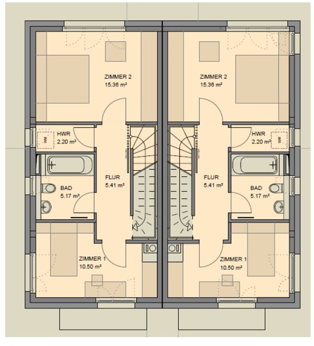 Im Erdgeschoss befinden sich das lichtdurchflutete Wohnzimmer mit einem offenen Küchenbereich sowie der Zugang zur Terrasse mit angrenzendem Garten. Zudem gibt es hier ein Gäste-WC mit bodengleicher Dusche. Über den Treppenbereich gelangt man in das Obergeschoss, in dem sich zwei Schlafzimmer, ein modernes Tageslichtbad mit Badewanne sowie ein Hauswirtschaftsraum mit Waschmaschinenanschluss befinden. Die offene Galerie im Dachgeschoss bietet zusätzlichen Raum, der sich flexibel als weiteres Schlafzimmer oder Arbeitszimmer nutzen lässt. Das Kellergeschoss bietet reichlich Abstellfläche und zusätzlichen Stauraum.