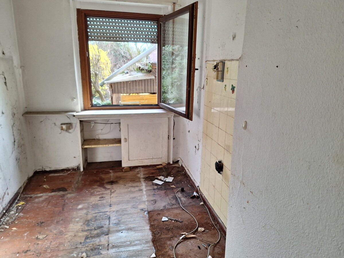 Das Grundstück ist rechteckig geschnitten und hat eine Straßenfront von ca. 20m (20m X 28m). Auf dem Grundstück steht ein voll unterkellertes, massiv errichtetes EFH, Bj. 1937. Auf Grund des Bauzustandes ist das Haus vor Bezug umfassend zu sanieren und modernisieren.