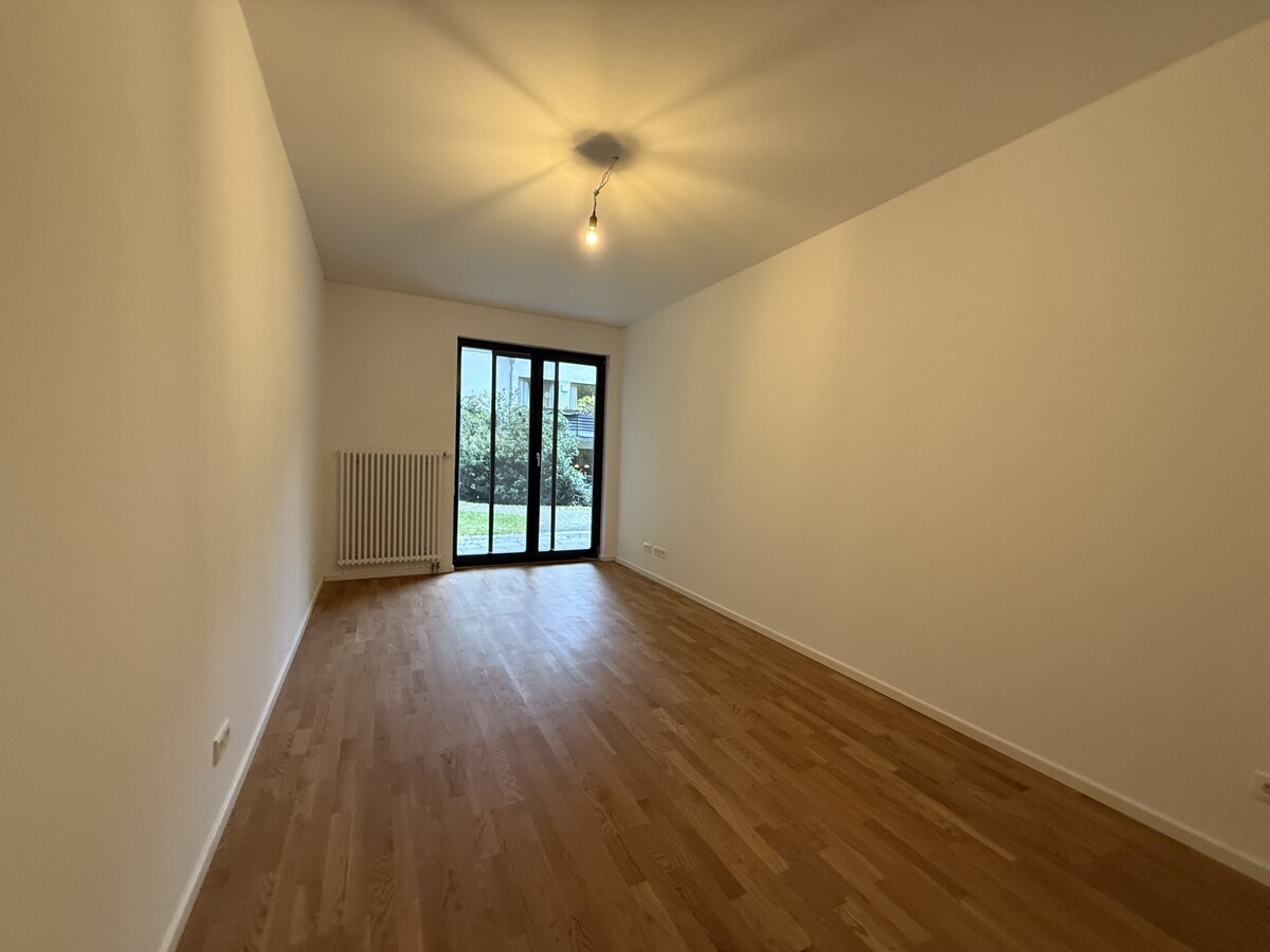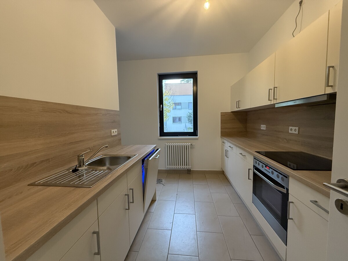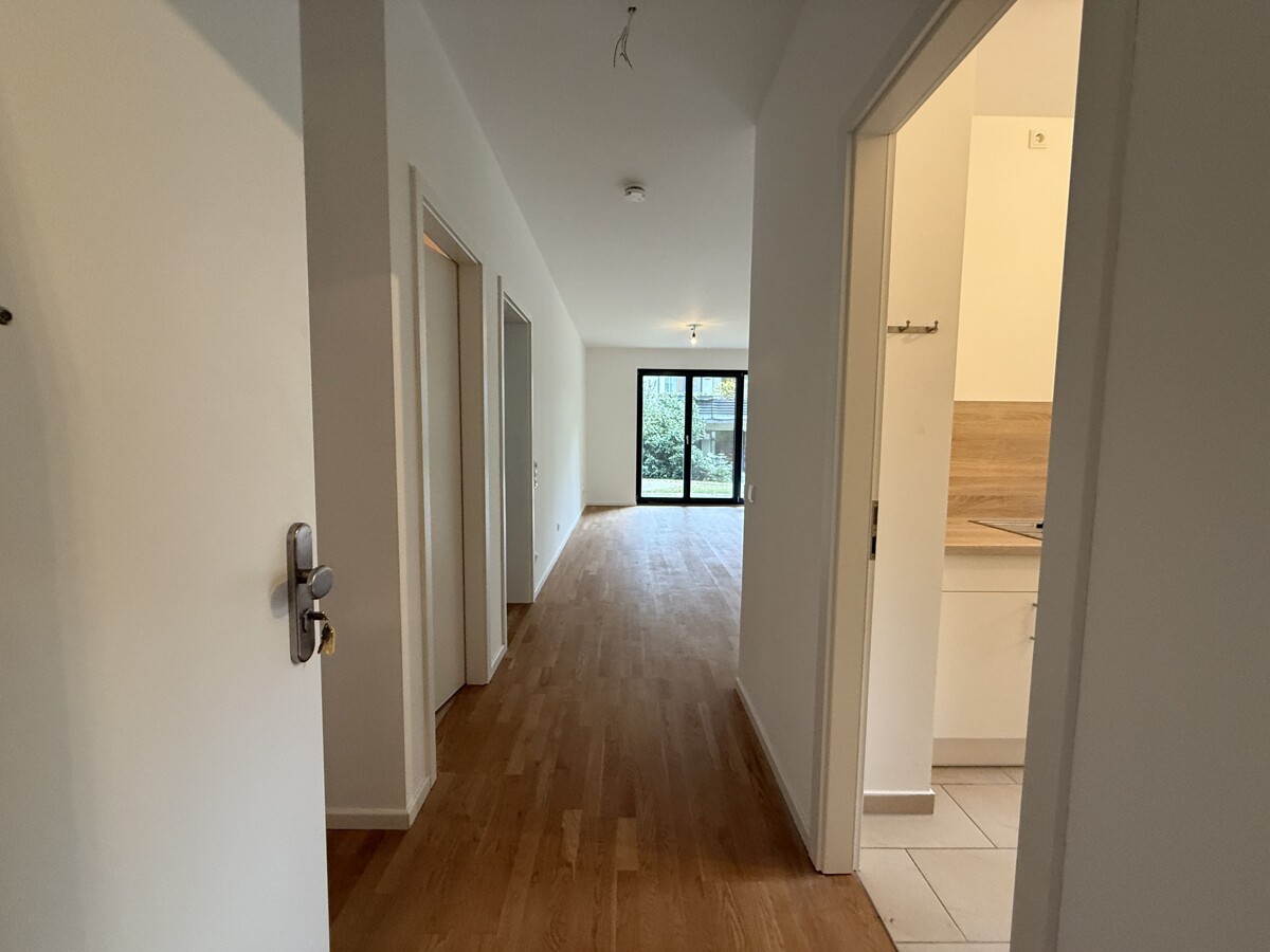 Vom großzügigen Flur aus gelangen Sie in das lichtdurchflutete Wohnzimmer mit offenem Übergang zur Küche sowie in das angrenzende Schlafzimmer. Vom Wohnbereich aus eröffnet sich der Zugang zur großen, sonnigen Terrasse (ca. 22m²), die zum Entspannen im Grünen einlädt. Die Küche ist zusätzlich über den Flur erreichbar und mit einer Einbauküche samt Elektrogeräten ausgestattet, die dem Mieter zur Nutzung zur Verfügung steht.